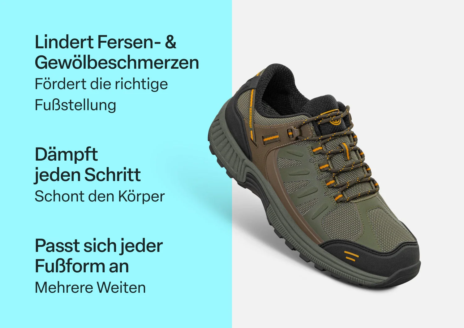 Komfort kennt keine Grenzen im Alma. Dieser leistungsstarke, wasserdichte Stiefel hält die Füße trocken und lässt Feuchtigkeit entweichen, während die stabile, profilierte Außensohle unwegsames Gelände bändigt. Helfen Sie, Schmerzen beim Gehen zu lindern, mit der anpassbaren Unterstützung des Ortho-Cushion Systems. Ein nahtfreies, geräumiges Innenleben schützt Ihre Mobilität und verhindert Fußirritationen, damit Sie mehr Zeit auf dem Trail verbringen können.
