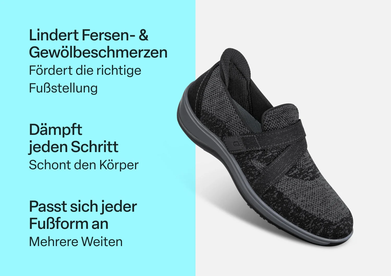 Bleiben Sie glücklich und entspannt auf Ihren Füßen in diesen therapeutischen Slippern, die eine entspannte Passform aus atmungsaktivem, dehnbarem Material und einen verstellbaren Innengurt bieten. Das nahtfreie Innenfutter von Amalya kann helfen, Irritationen zu verhindern, während die orthopädische Einlegesohle und die breite Zehenbox eine gesunde, unterstützte Grundlage für lange, schmerzfreie Tage schaffen. Eine milde Wippsohle nimmt den Aufprall und die Anstrengung aus jedem Schritt.